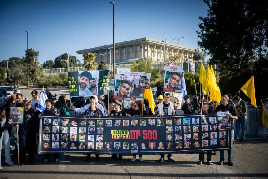 Les familles des otages ont effectué lundi matin une marche de protestation à Jérusalem, de la résidence du Premier ministre jusqu'à la Knesset, et ont déclaré un jeûne de 500 minutes. Makabit Mayer, la tante des jumeaux Gali et Ziv Berman, kidnappés au kibboutz Nahal Oz et sont toujours en captivité, a déclaré au début de la marche : "Le 500e jour n'est pas différent de tous les autres que nous avons traversés. Nous espérons que ce cauchemar prendra fin. Je veux aussi que leur mère Tali serre Gali et Ziv dans ses bras - appelez à leur libération".